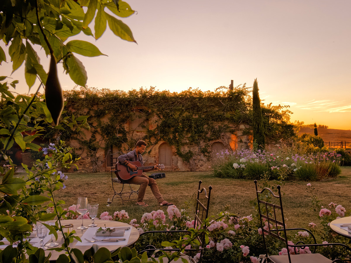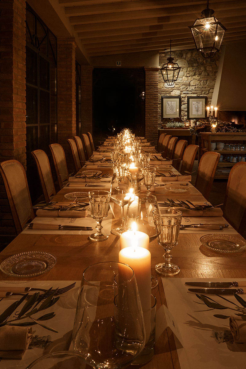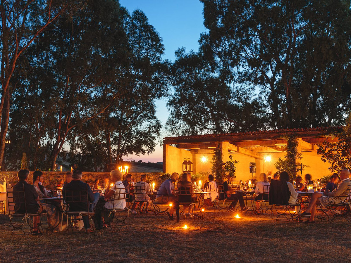 Alla luce del tramonto quando il sole cala dietro il mulino tra i rossi e gli arancio, inizia il momento magico della cena dove gli ospiti diventano amici ritrovati dopo un lungo viaggio, dove si fa festa e le cene sono piccoli eventi, per serate che rimangono nel cuore.