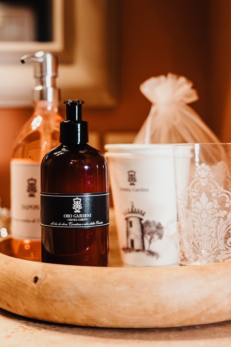 - Dall’incontro della tradizione cosmetica del Monastero Cistercense di Valserena e dei nostri oli extra vergine di oliva al Rosmarino e del Monocultivar Coratina, ricchissimo di polifenoli, è nata la preziosa linea detergente presente nei bagni.