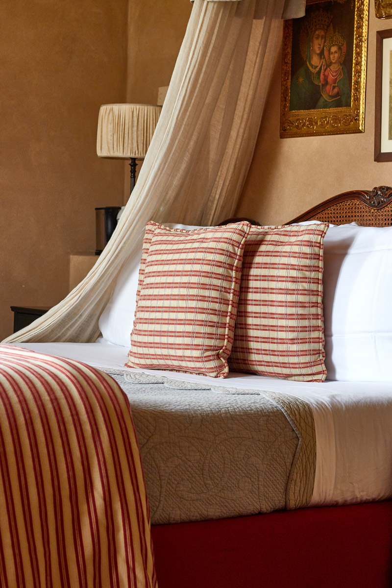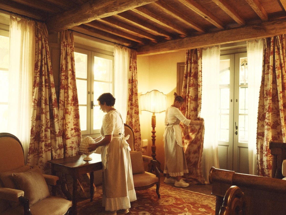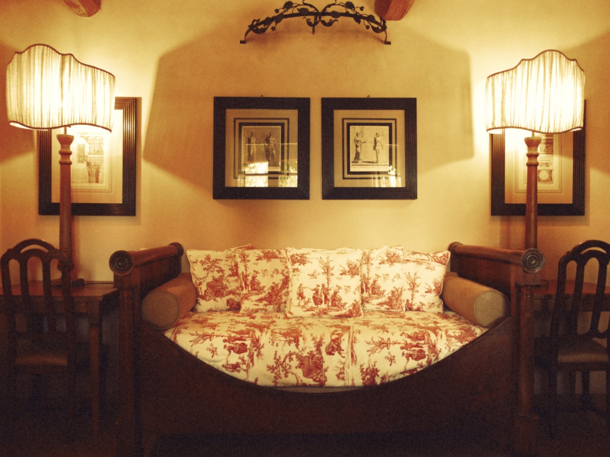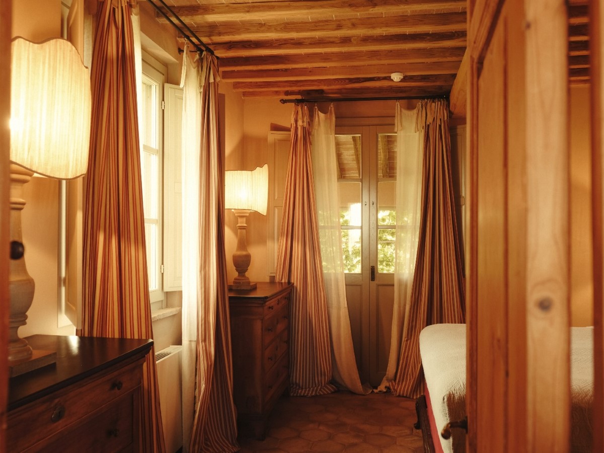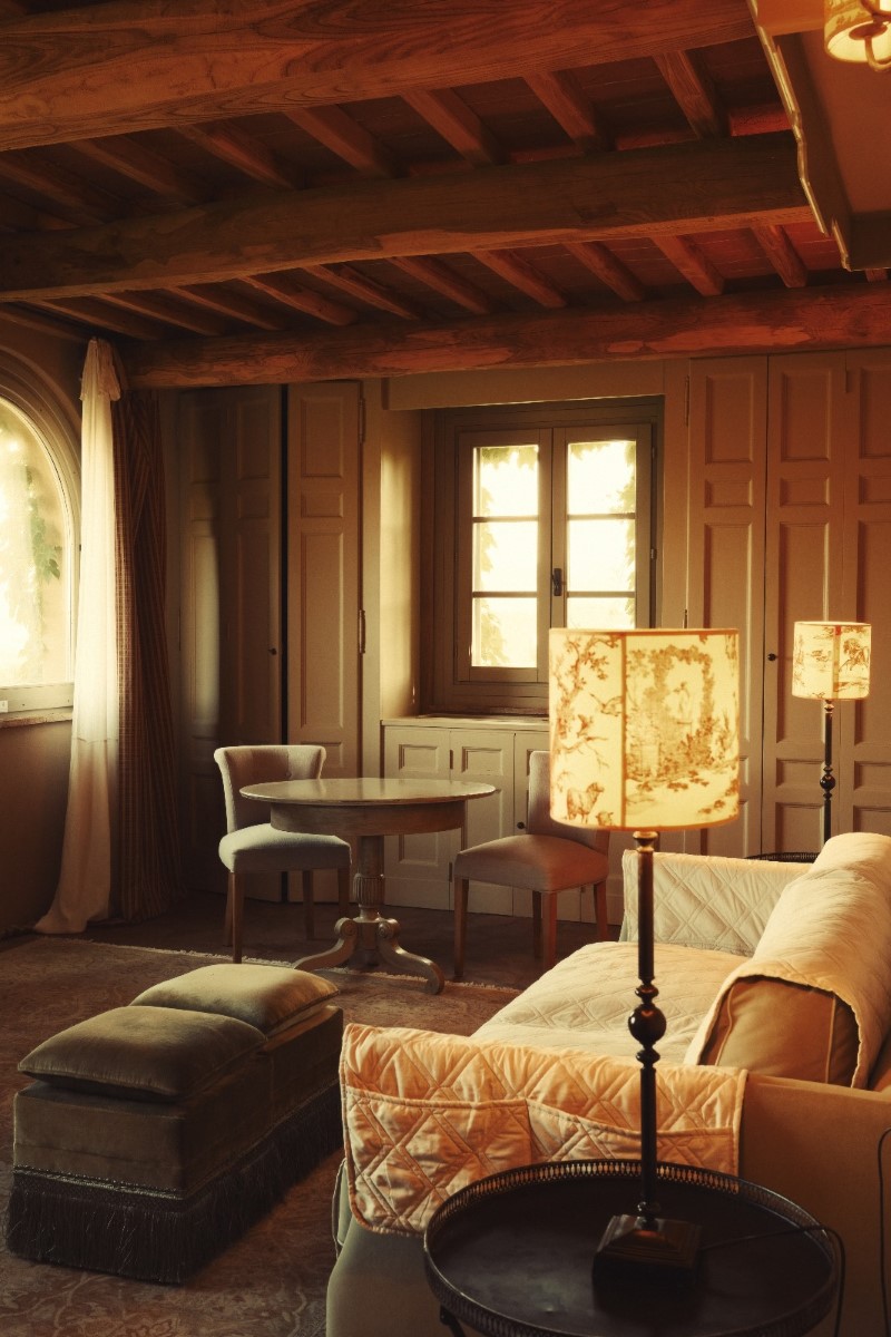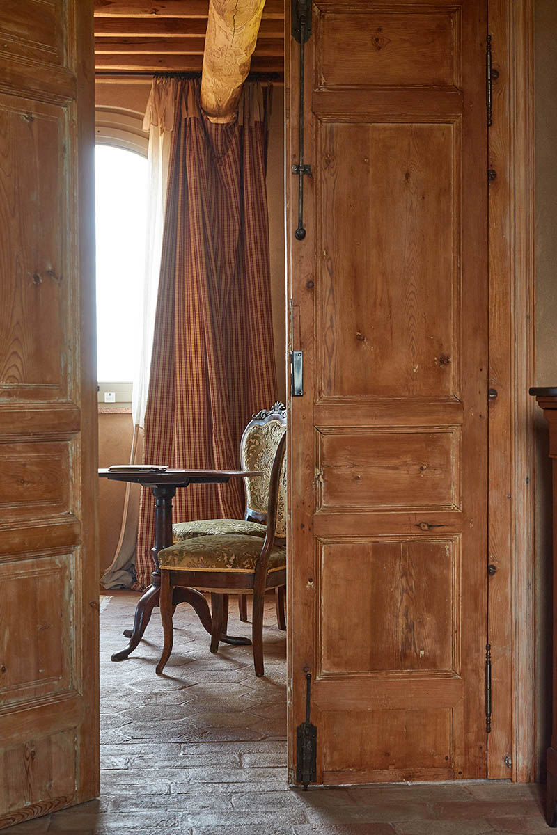 Accolti da un ampio salotto da dove poter godere di una vista iconica sulla campagna Toscana, le camere si distinguono per i raffinati tessuti francesi e gli antichi piumoni in lino ricamato.